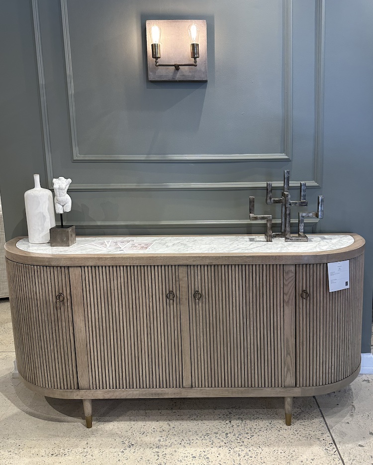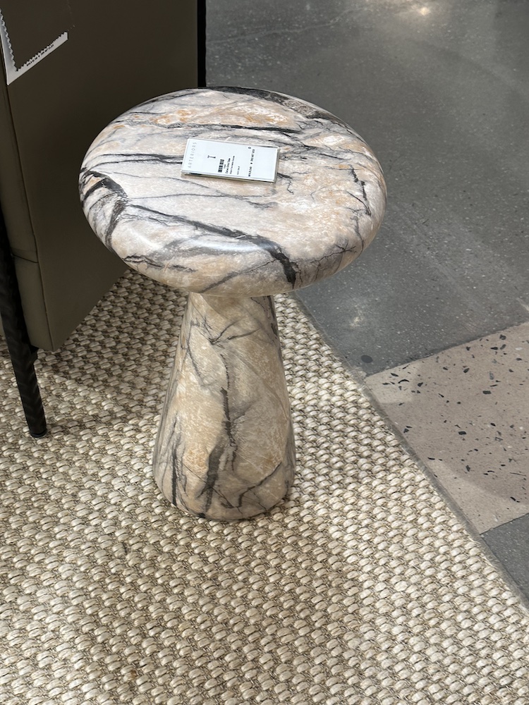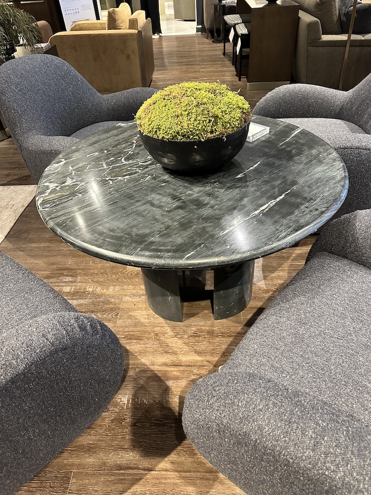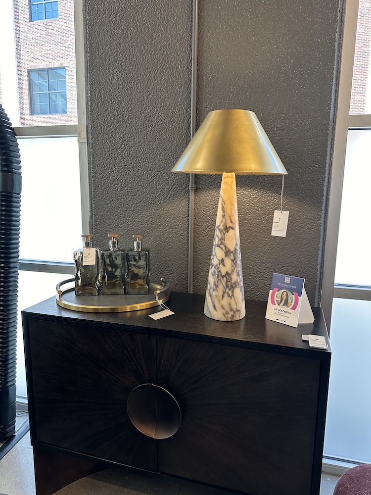 Marble is having its moment. Glenna saw it in so many showrooms and used in some fabulous ways—tables, consoles, lighting, accents and more. Above, Fairfield showed one way the beauty of marble can be incorporated. See a sampling of more stunning stonework below.