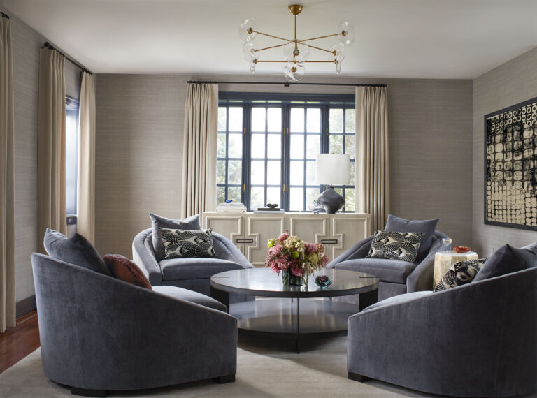 Working in thoughtful phases, we began with the main floor’s shared living spaces, the office, and the primary suite. Throughout, we prioritized a balance of form and function—introducing a warm, neutral palette layered with tactile fabrics, curated artwork, statement lighting, and tailored furnishings. Each selection was made with intention, marrying aesthetic appeal with the durability required for a growing family. While the overall palette remains calm and cohesive, we brought each room to life through the strategic use of texture, pattern, and subtle pops of color. The result is a timeless, transitional interior that feels collected and effortless—classic at its core, with refined “wow” moments that surprise and delight.