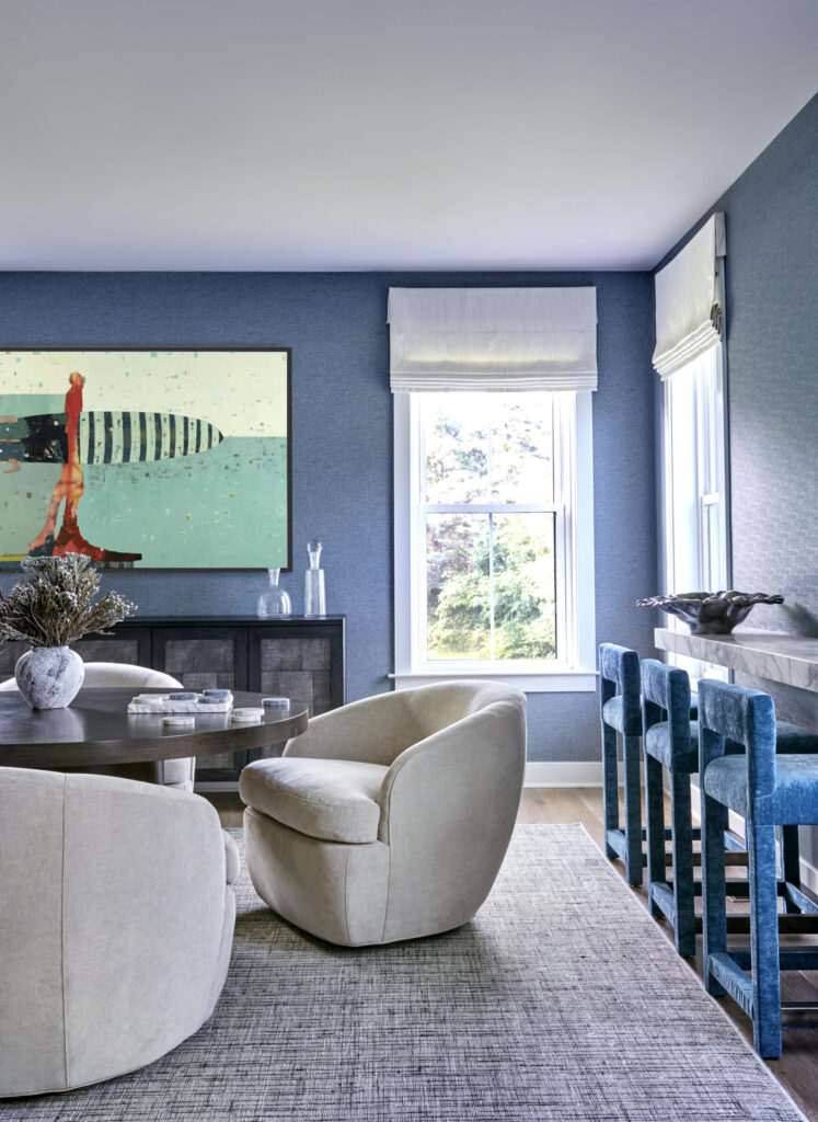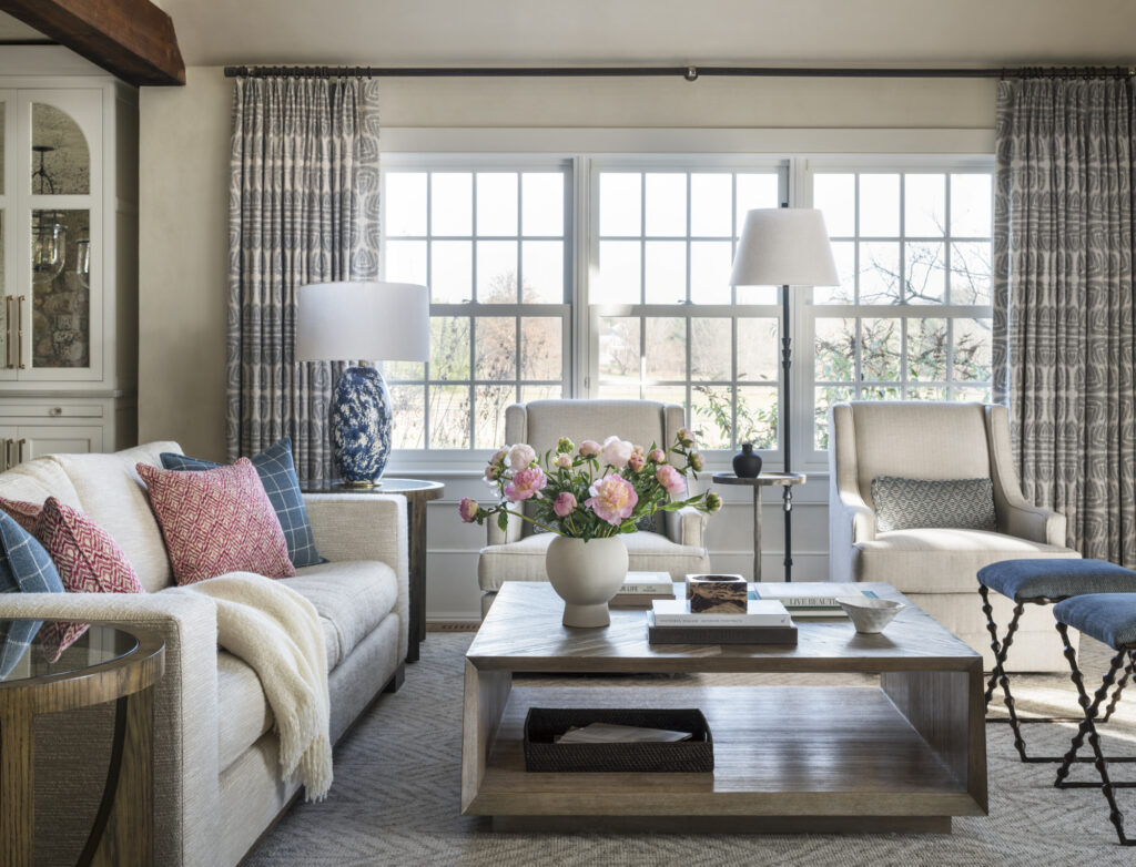 In New Hope, that meant layering texture and pattern in a way that introduced warmth while maintaining a sense of lightness, allowing the space to feel both refined and welcoming. In Bucks County, it meant embracing materials and forms that reflected our clients’ desire for something distinctive, while still ensuring that the home would feel grounded and enduring over time.